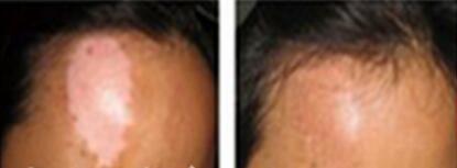 患病经历:额头中央处出现白斑,起初发病时白斑颜色较浅,呈淡白色,到医院检查后确诊为白癜风,后治疗效果不佳,病情加重,白斑面积扩散,面积约占半个额头大小,而且白斑颜色逐渐加深,呈纯白色。先后曾经在几家医院进行治疗,治疗几个疗程,效果并不理想。